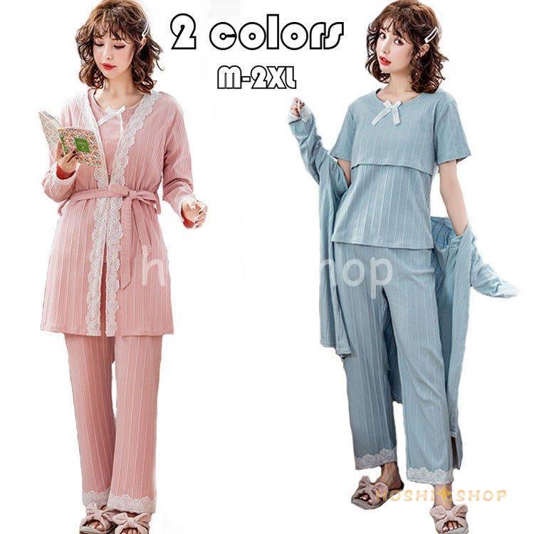 マタニティーパジャマ 授乳服 3点セット 春夏秋 長袖 マタニティーパジャマ 前開き 綿大きいサイズ 妊娠 上下セット 授乳口付き ルームウェア 部屋着 ママ