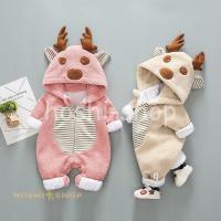 着ぐるみ もこもこ 子供用 ベビー服 赤ちゃん着ぐるみ カバーオール フード付き ロンパース 鹿 トナカイ 前開き 長袖 男の子 女の子 厚手 ベビー 防寒 赤ちゃん キッズ 冬服 可愛い クリスマス 誕生日 ファスナー式 暖かい 出産お祝い ギフト ベビー服