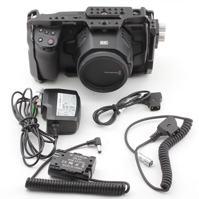 <並品>ブラックマジック デザイン Blackmagic Design Pocket Cinema Camera 6K <特記事項>専用ケージ・電源ケーブル・ケーブル2本・ダミーバッテリー電源アダプター付属。端子カバーと充電蓋ありません。!