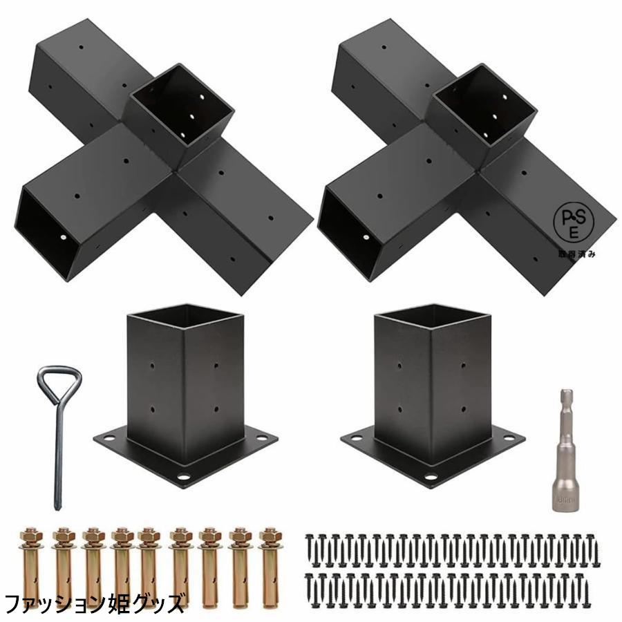 パーゴラキット パーゴラブラケット 4ウェイ直角コーナーブラケット パーゴラ組立キット 木工DIYポストベースキット ガゼボ/パティオパーゴラ/ログキャビン用木