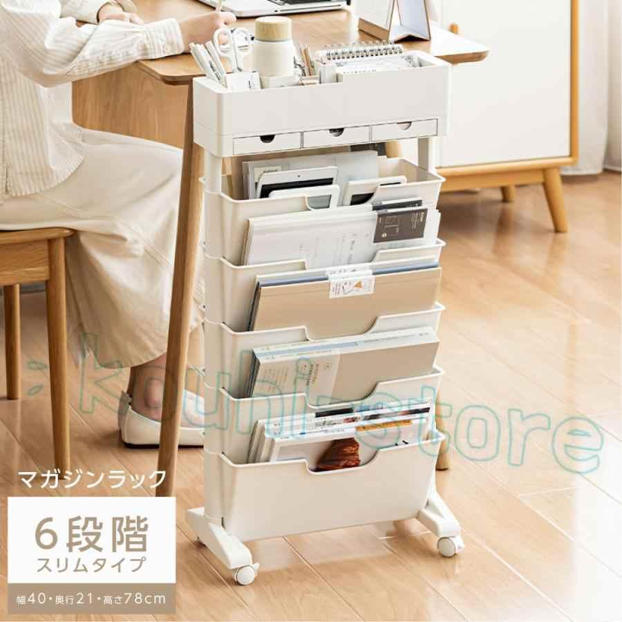 マガジンラック ファイルワゴン キャスター付き 6段 スリム デスク収納 収納棚 収納ラック 本棚 ワゴン オフィス リビング 雑誌収納