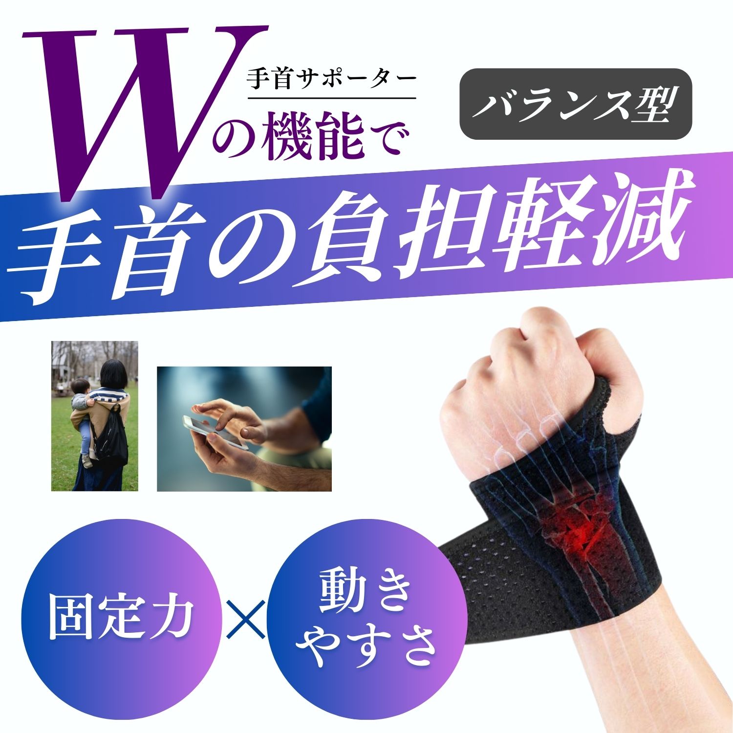 手首 サポーター サポートタイプ【理学療法士企画】腱鞘炎 固定 薄手 手根管症候群 捻挫 左右兼用 男女兼用 スポーツ 赤ちゃん 育児 ゴルフ テニス リラサポ