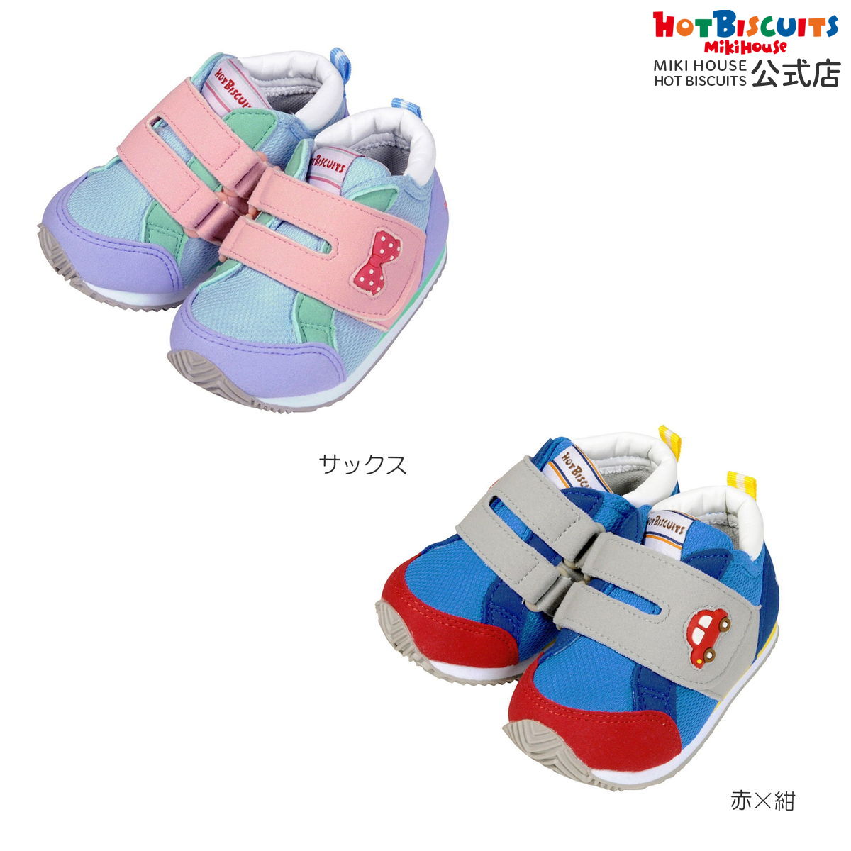 ミキハウス メッシュ素材のスポーティ セカンドシューズ 靴 くつ ピンク ブルー 赤×紺 サックス 13cm 13.5cm 14cm 14.5cm 15cm ホットビスケッツ HOT BISCUITS
