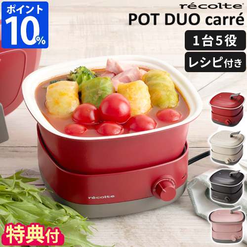 | できたての美味しさを味わう、1台5役の卓上電気鍋。 付属のパーツを組み合わせて様々な調理を楽しめる人気のマルチクッカー『ポットデュオ』シリーズに、角丸の四角いフォルムが特長の“キャレ”が登場です。この1台で「煮る」「蒸す」「焼く」「揚げる」「炊く」の、5つの調理をこなします。ひとり、ふたりにちょうど良く、テーブルにも置きやすいサイズ感。できたてならではの美味しさを味わえるのが、ポットデュオの楽しみです◎毎日の食卓からパーティーシーンまで幅広く活躍してくれます。 |