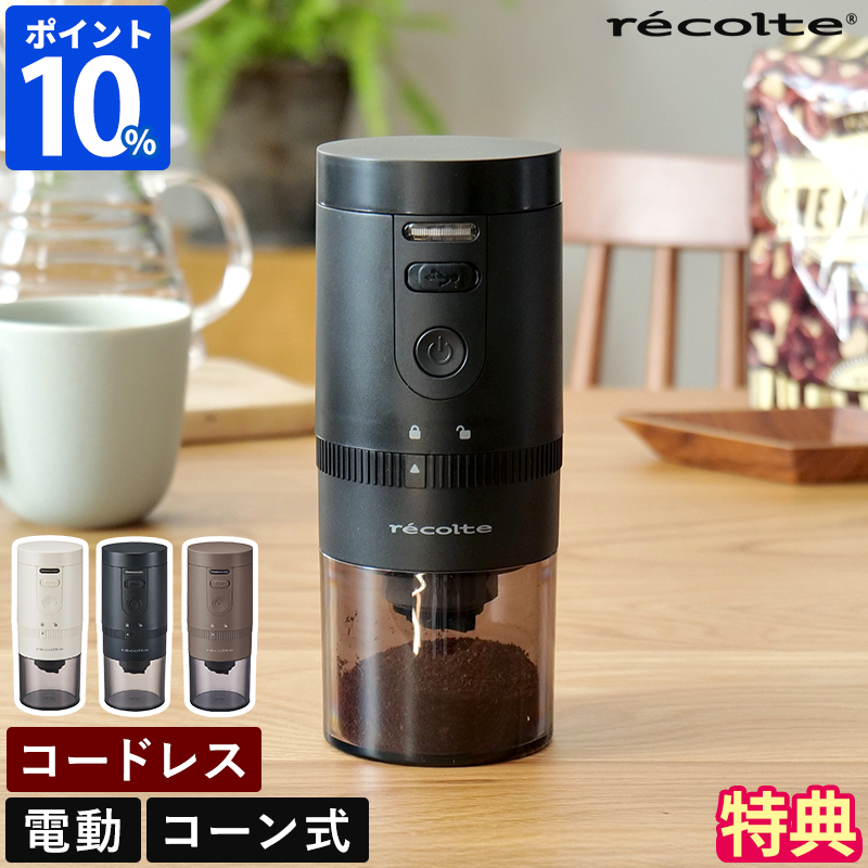 コーヒーミル 電動 レコルト recolte コードレス コーヒーグラインダー RCM-3 充電式 軽量 コンパクト 小型 コーン式 粒度調節 おしゃれ 洗える 持ち運び ギフト