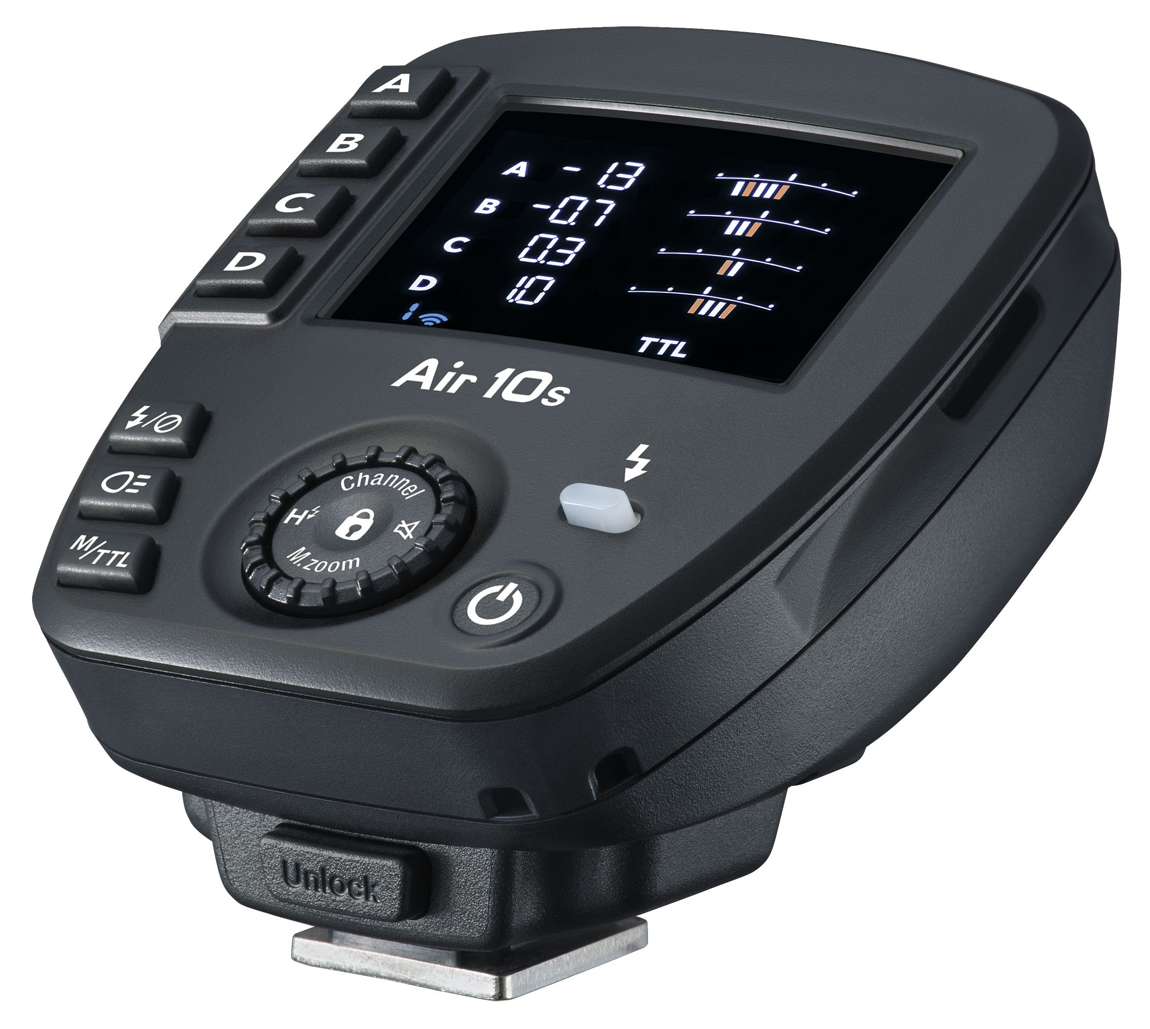 NAS(ニッシンエアシステム)対応コマンダーAir10sは、従来モデルであるAir1の上位モデルです。 Air1と同様に、TTLオート/マニュアルでの撮影・光量調整・照射角の設定・使用チャンネルの切替・ビープ音のオンオフなどの設定がすべてリモート操作できます。 もちろん技適マークを取得していますので日本国内で安心してご利用頂けます。 Air10sは1/3EVステップ(*1)での調光に対応しています。 さらにマニュアル発光モードにおいては最小1/256(*1)の微小発光も設定可能。 ハイスピードシンクロ(FP発光)にも対応し、通信距離は最大100m(*2)になり