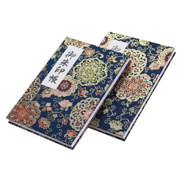 御朱印帳 カバー付 蛇腹式 40ページ 華紋唐草 紺