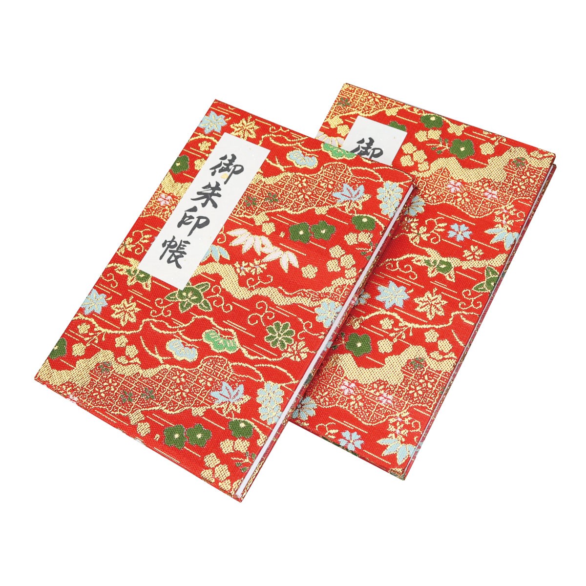 御朱印帳 蛇腹式 カバー付 40ページ 吉祥古典花 赤色