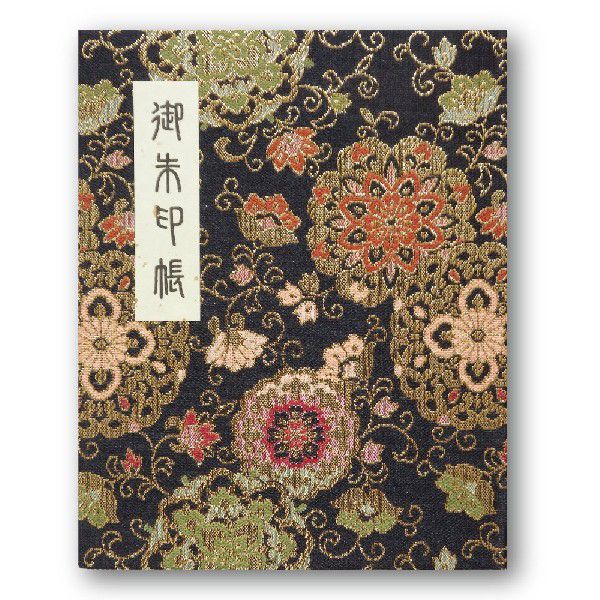 御朱印帳 ブック式 和綴じ カバー付 60ページ 華紋唐草 黒