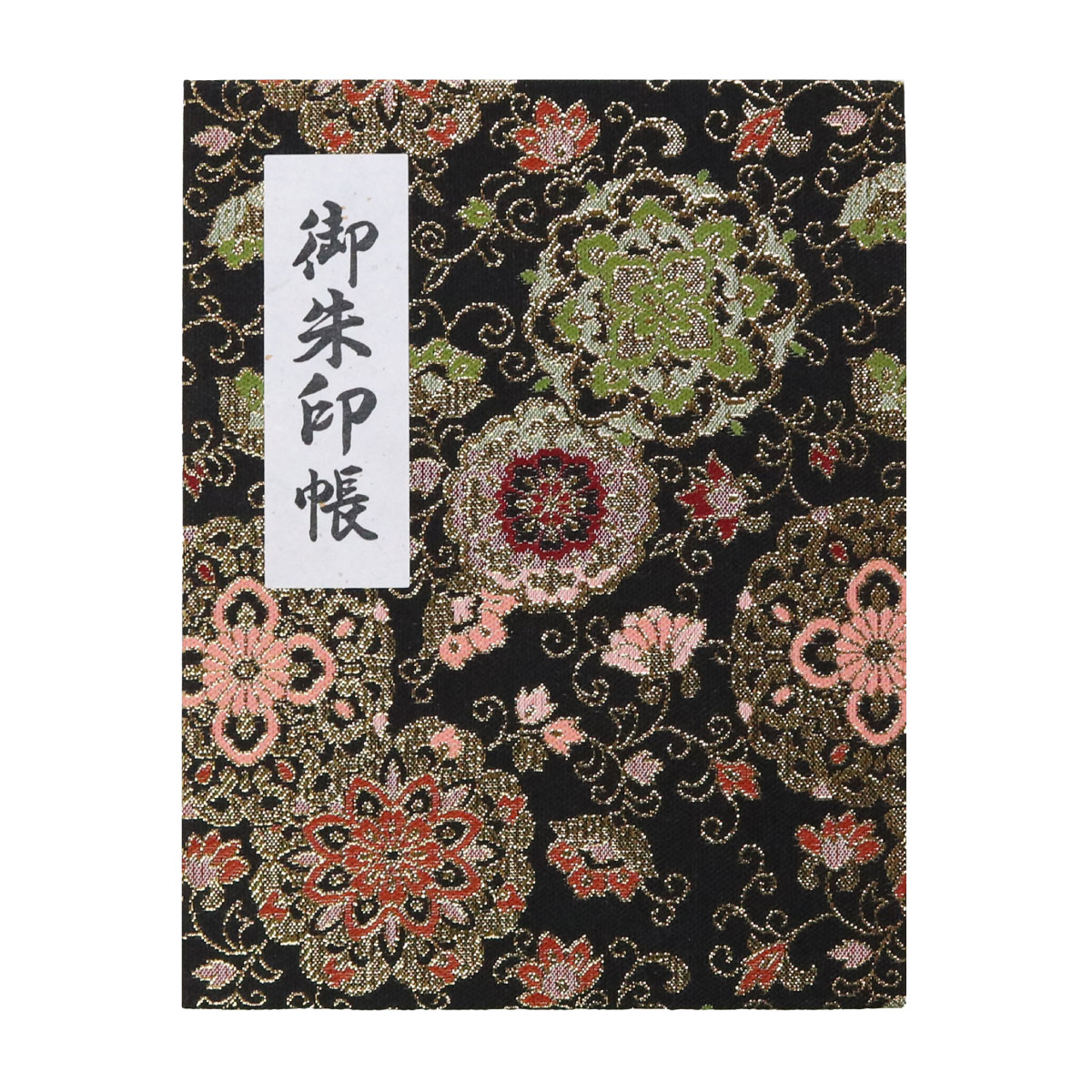 御朱印帳 カバー付 蛇腹式 100ページ 華紋唐草 黒色