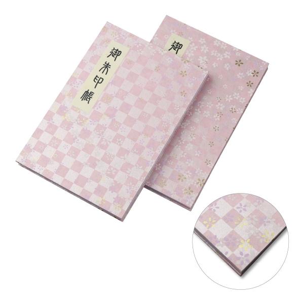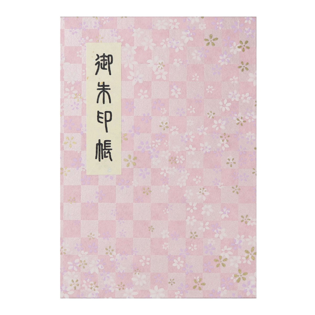 御朱印帳 蛇腹式 カバー付 40ページ 市松小花 桜色