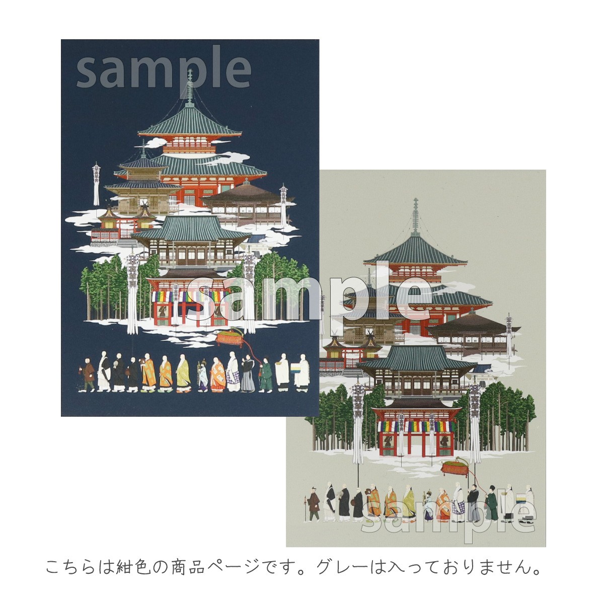 絵はがき ハガキ 伽藍 紺 宮城めぐみデザイン 5枚セット