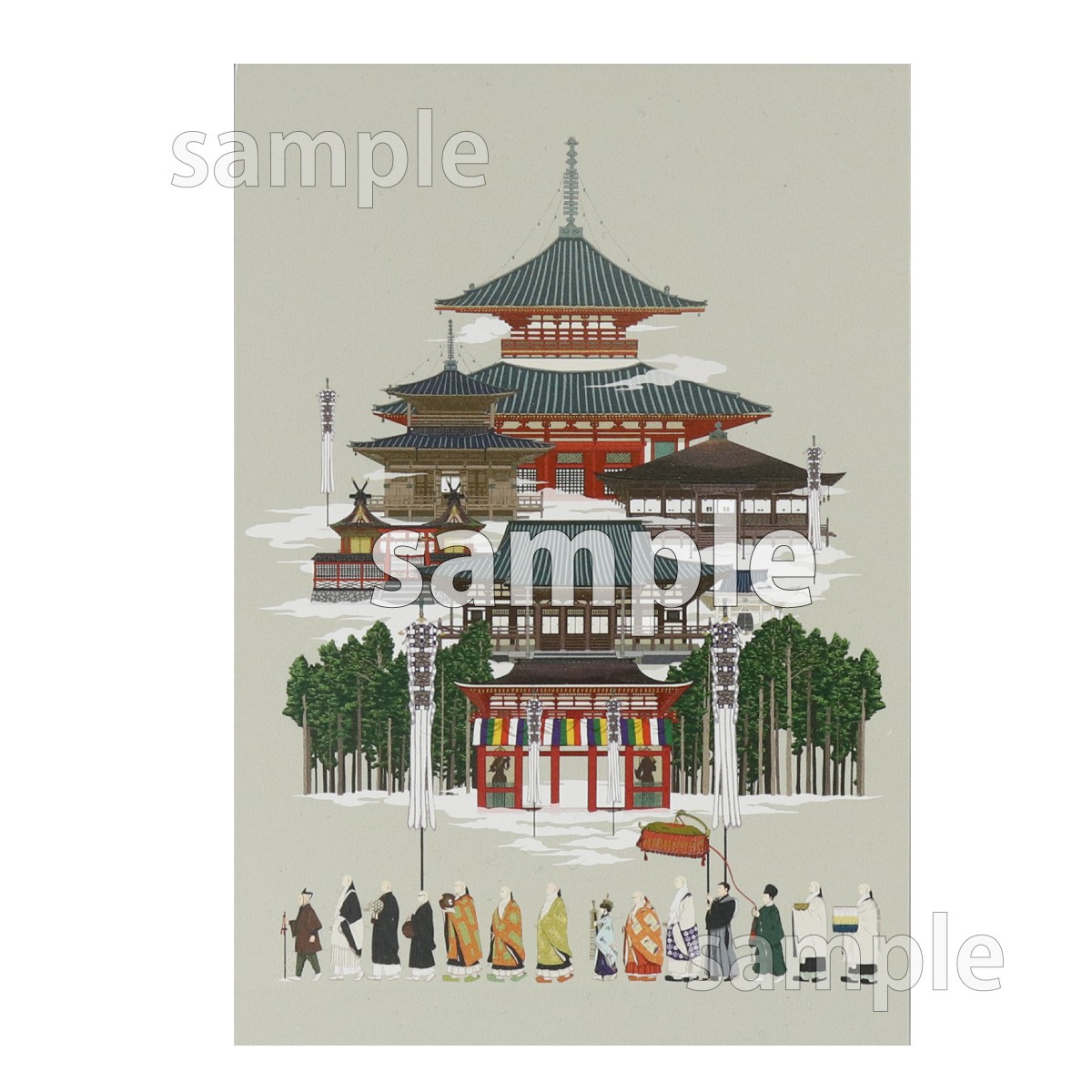 絵はがき ハガキ 伽藍 グレー 宮城めぐみデザイン 5枚セット