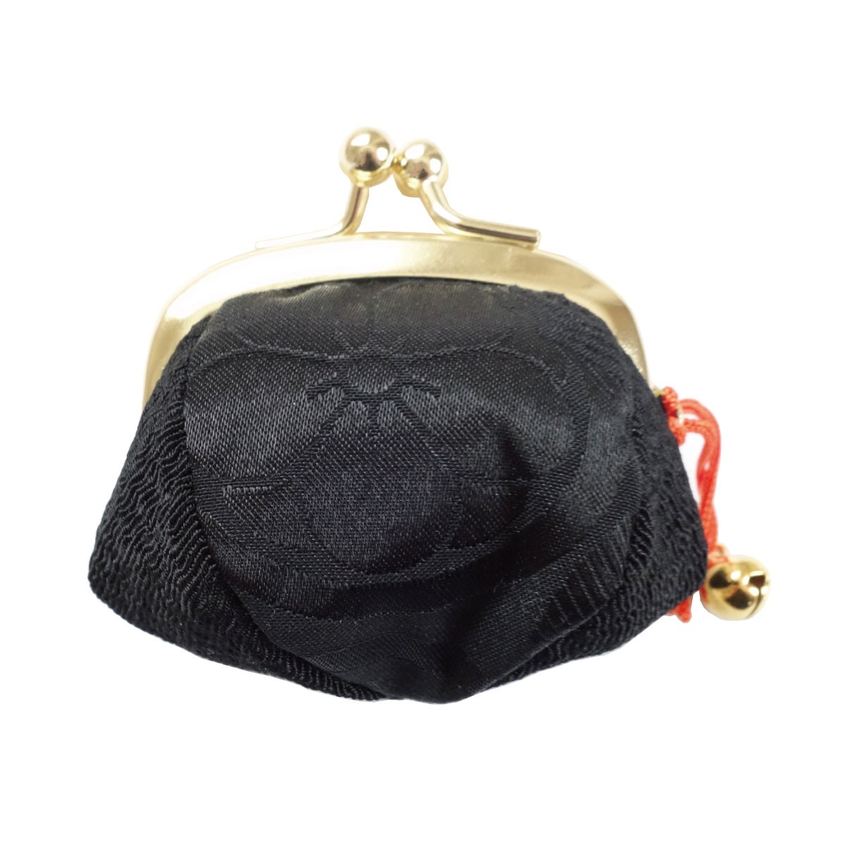 がま口 財布 小銭入れ 指輪差し付き ミニサイズ 小鈴付 花紋 黒