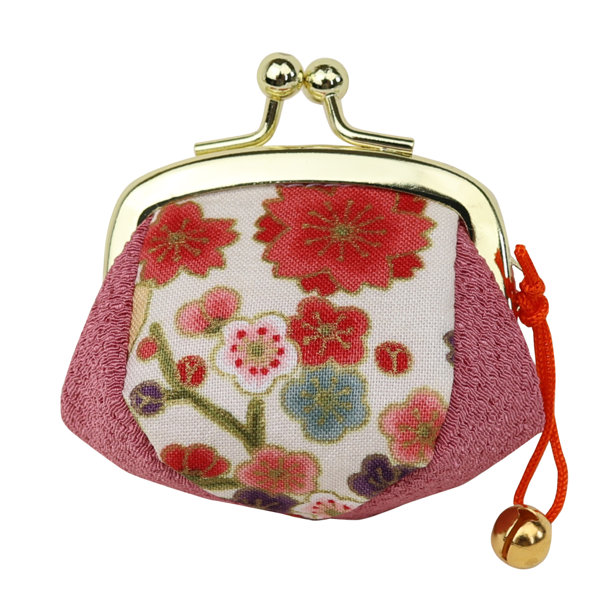 がま口 財布 小銭入れ 指輪差し付き ミニサイズ 小鈴付 四季彩爛漫 桃