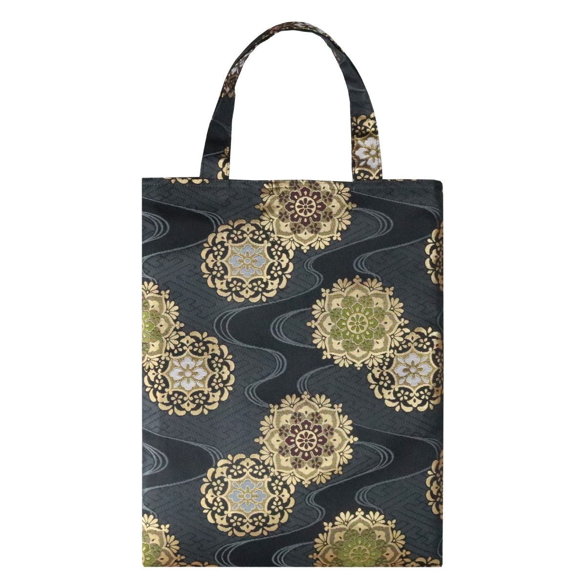 手提げバッグ かばん 納経帳 御朱印帳 袋 西陣織 流水華紋 黒