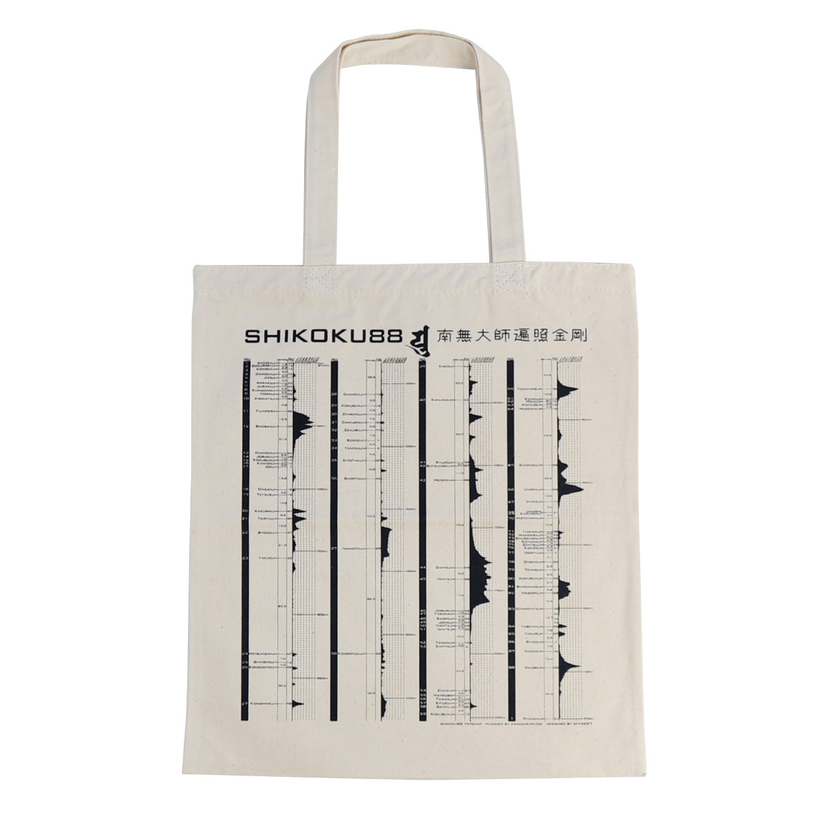 ・四国八十八ヶ所の札所番号・札所名・札所間の距離・札所の標高がデザインされています。