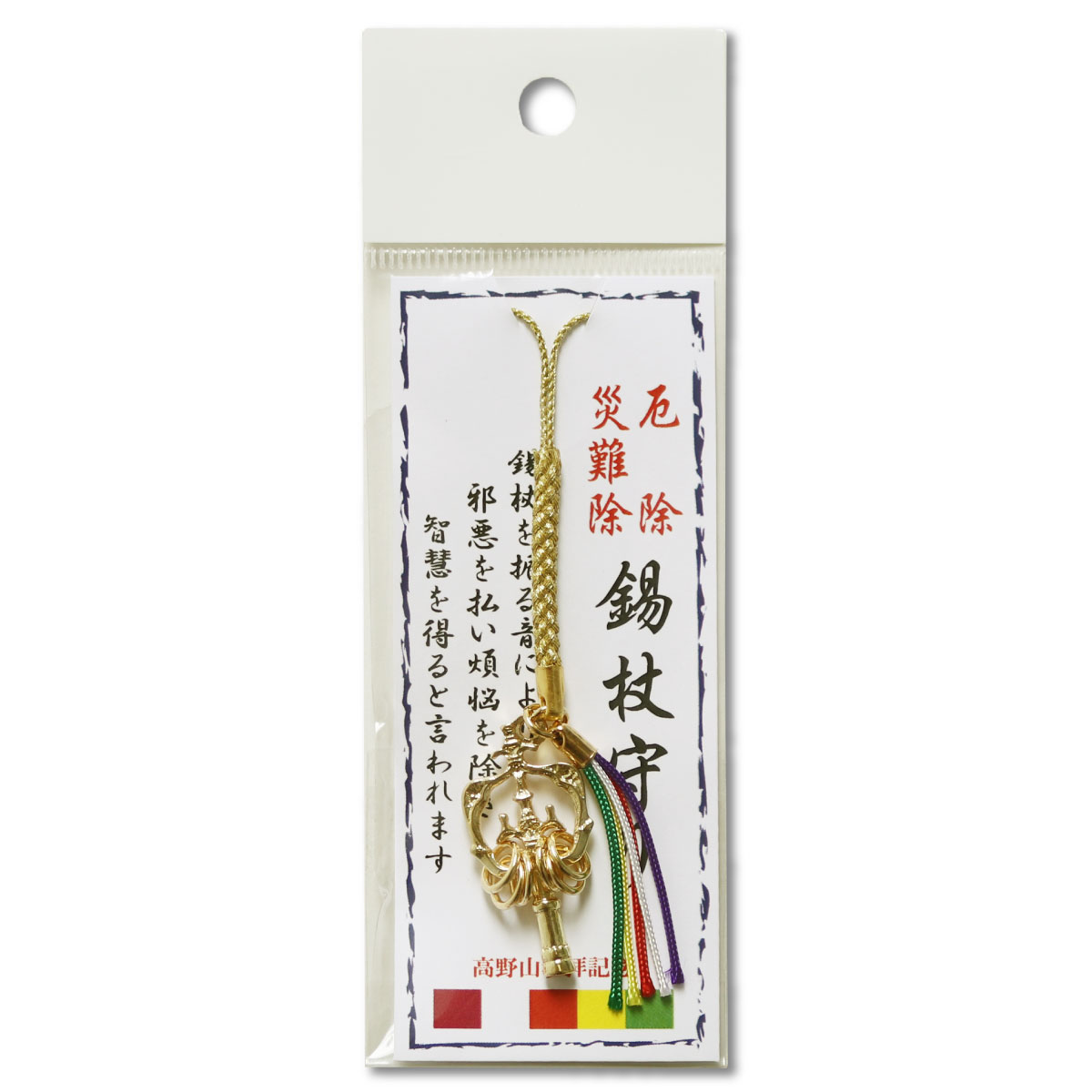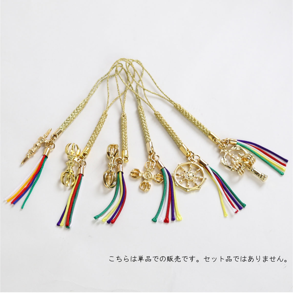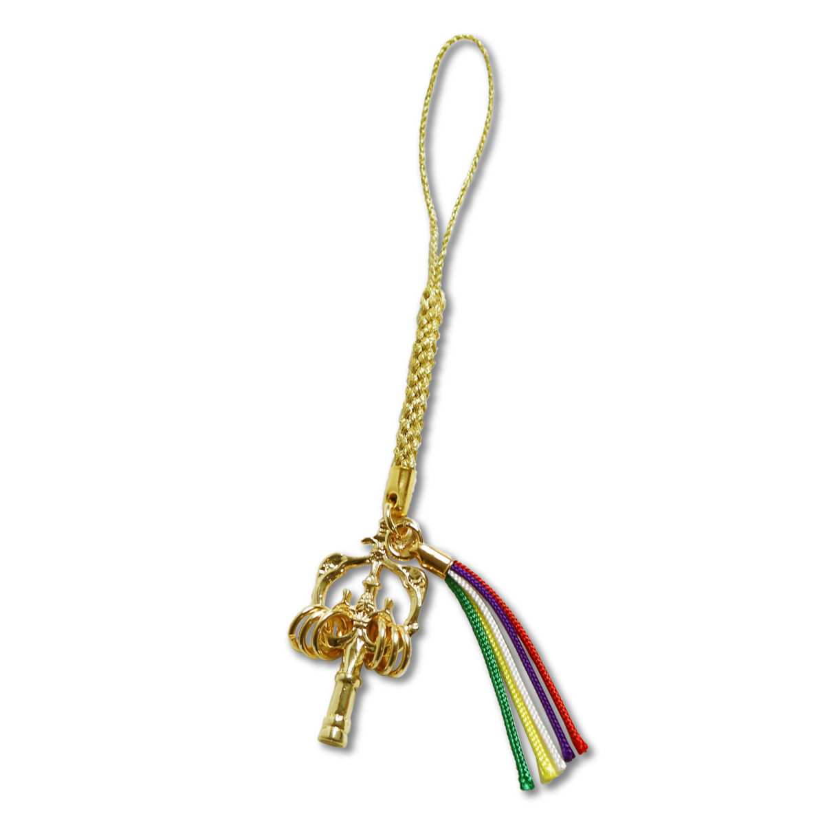 根付 ストラップ 錫杖 お守り 密教法具 金紐 五色タッセル付き 五色飾り紐 送料無料 送料込み (※送料無料はメール便のみ)
