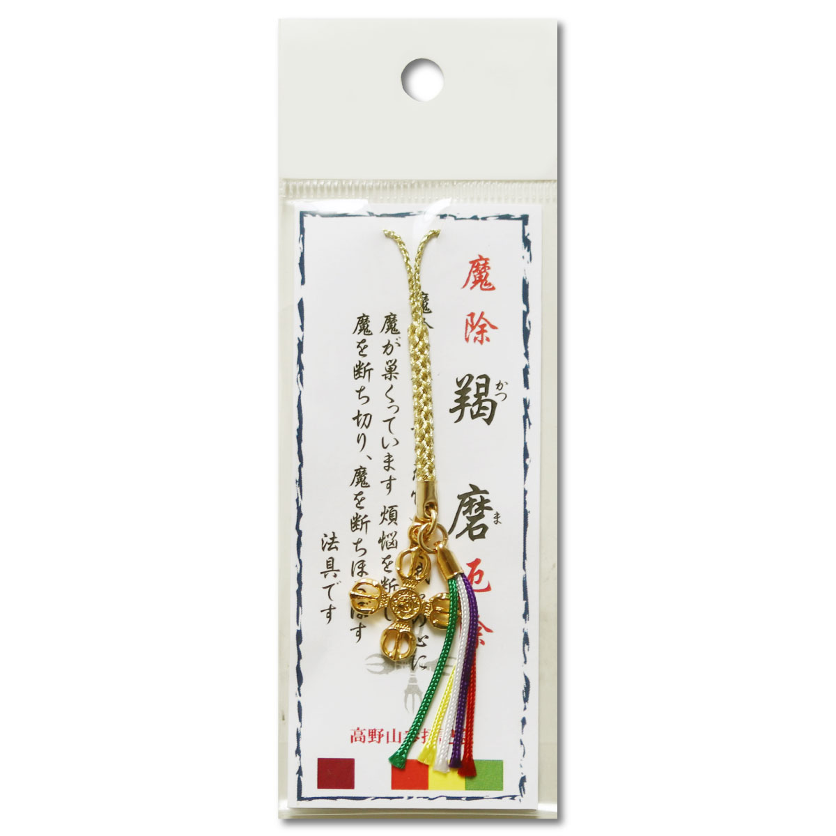 根付 ストラップ 羯磨 お守り 密教法具 金紐 五色タッセル付き 五色飾り紐 送料無料 送料込み (※送料無料はメール便のみ)