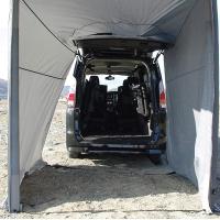 車のリアハッチやサイドを利用して設置するTerzoエアフレーム カーサイドタープ。