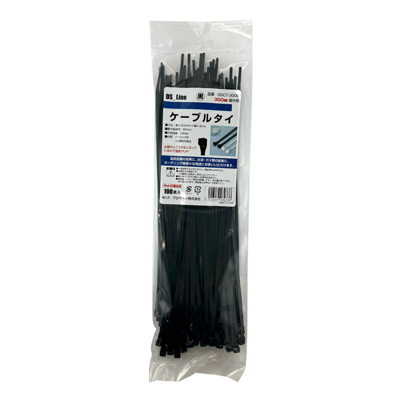 ケーブルタイ 300mm 結束バンド 100本入 ブラック 黒 屋外用 電気配線・水道・ガス管等に PROMOTE DSCT-300B