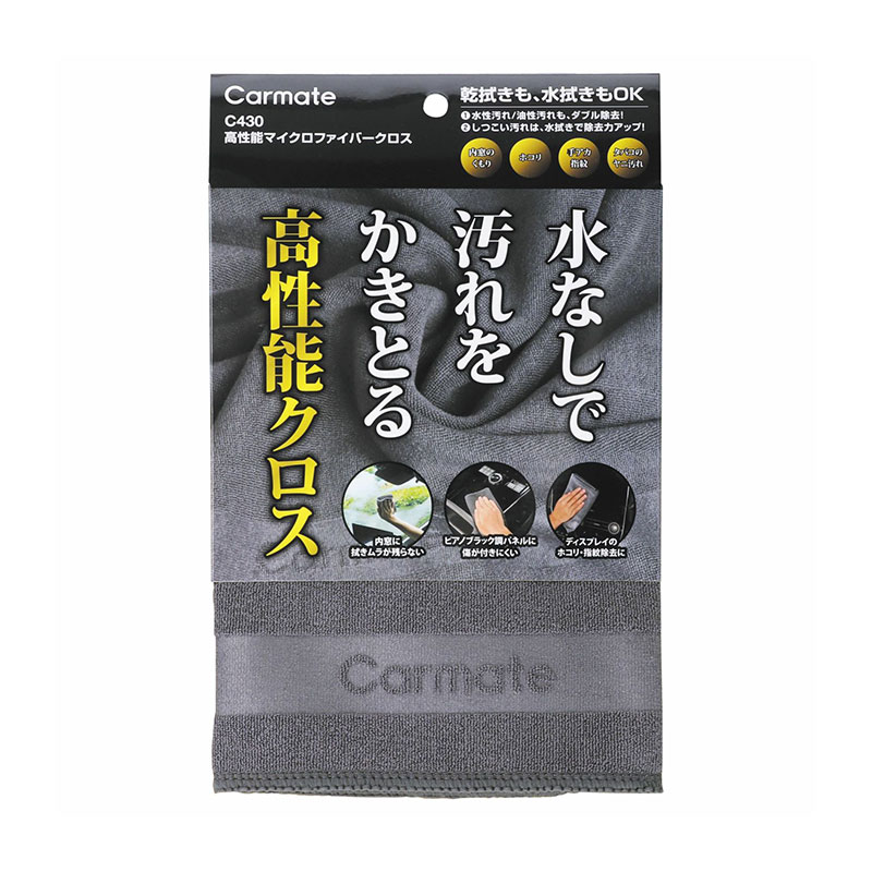 高性能マイクロファイバークロス 1枚 水性・油性汚れ除去 内装用クロス 車内清掃 洗えるクロス カーメイト C430