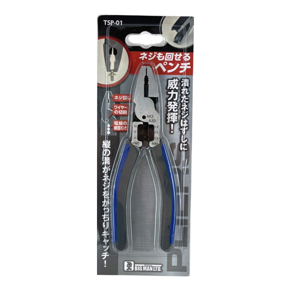 ネジも回せるペンチ 潰れたネジも ワイヤー切断 サビ・特殊・六角・ナットにも対応 万能 便利 ビッグマン TSP01