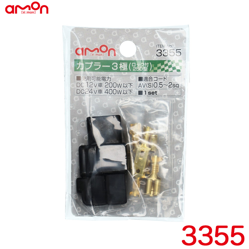 カプラー3極(ロック付 250型) 適合コードサイズAVS0.5sq〜2sq ロック機能付 3本の配線コードを接続 エーモン/amon 3355