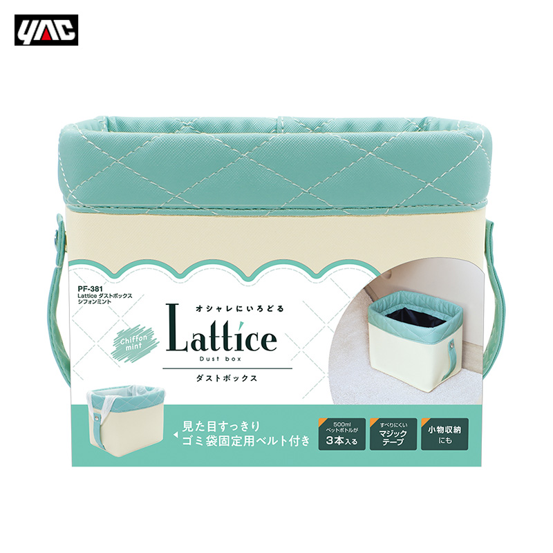 Lattice ダストボックス シフォンミント ゴミ箱 車内収納 ホワイトラティスステッチ 小物 底面マジックテープ ヤック/YAC PF-381