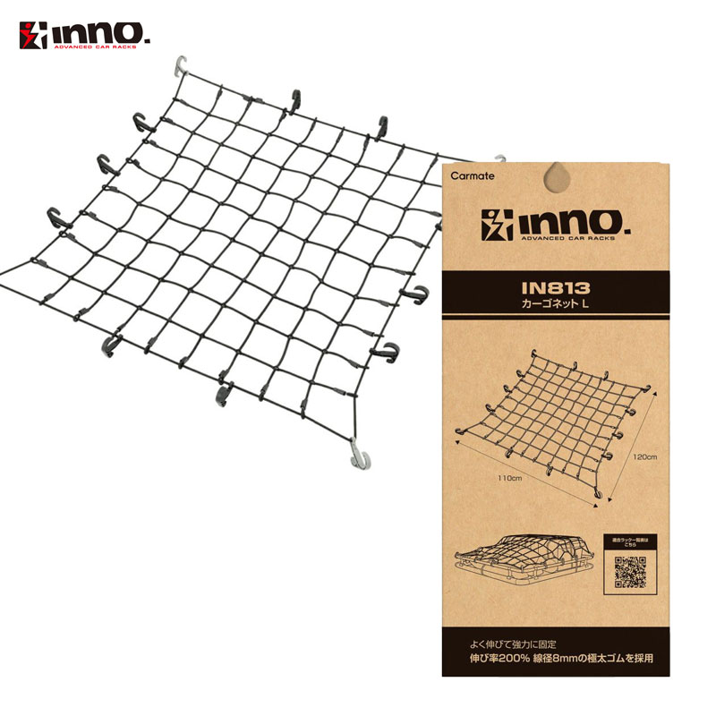 カーゴネットL 110×120cm ブラック 荷物固定 ネット ラック上の荷物 線径8mm極太ゴム INNO IN813