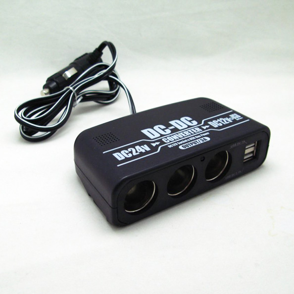 DCDCコンバーター デコデコ 車 トラック DC24V電源をDC12Vに変換 USBポート×2(2.1A+1A) DC12Vソケット×3 スマホ充電/ブレイス BS-250