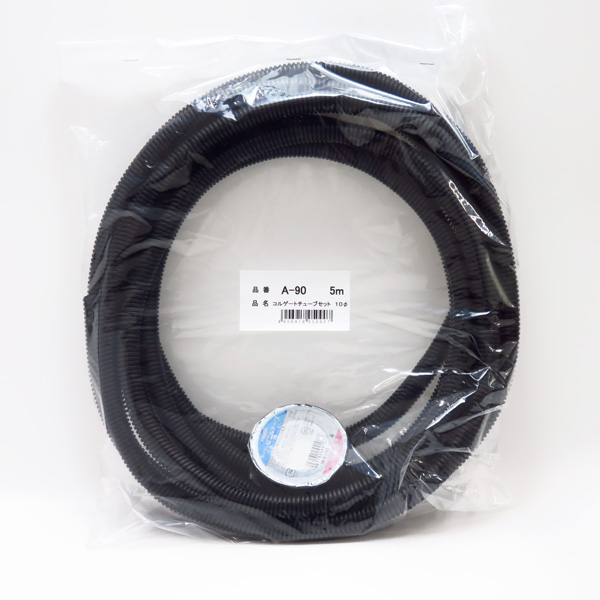 コルゲートチューブセット 内径約φ10mm×5m ブラック 黒色ビニールテープ付属 配線の保護に メルテック/大自工業 A-90 ht