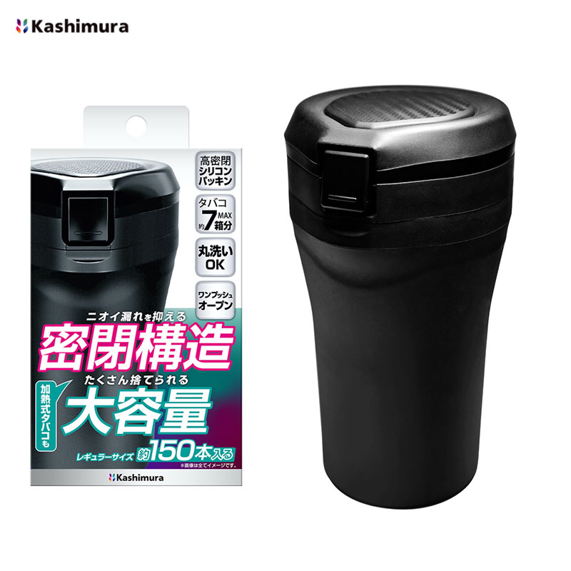 灰皿 大容量ボトルアッシュ ブラック 丸洗い可能 ワンプッシュ開閉 密閉型 電子タバコ・タバコ吸い殻入れ Kashimura AK-224