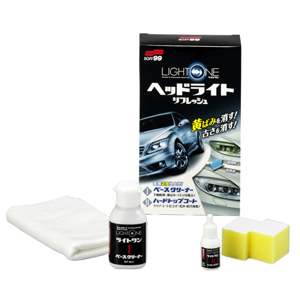 LIGHT ONE ライトワン ヘッドライトリフレッシュ 黄ばみ・古さを消す ベースクリーナー50ml ハードトップコート8ml ソフト99 03133
