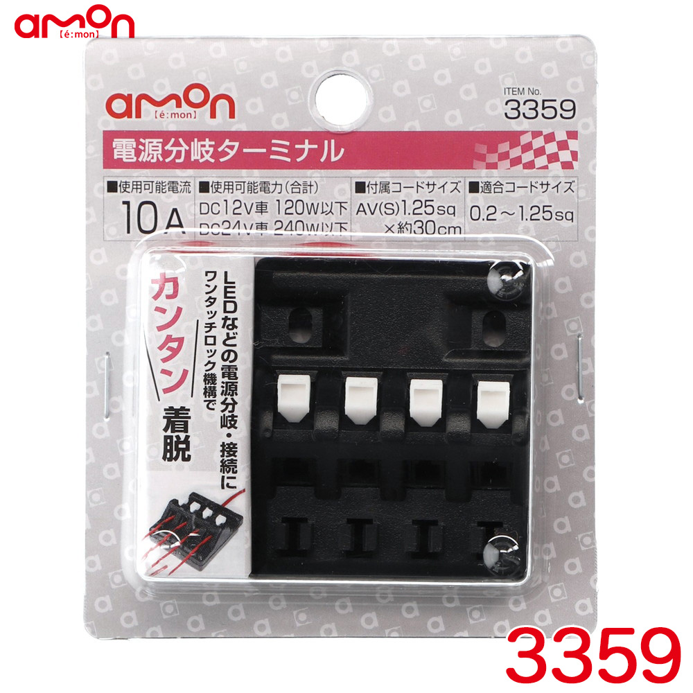 【P最大12倍 3/15限定】電源分岐ターミナル 端子・分岐パーツ ワンタッチロック機構でカンタン着脱 適合コードサイズ0.2sq〜1.25sq エーモン/amon 3359
