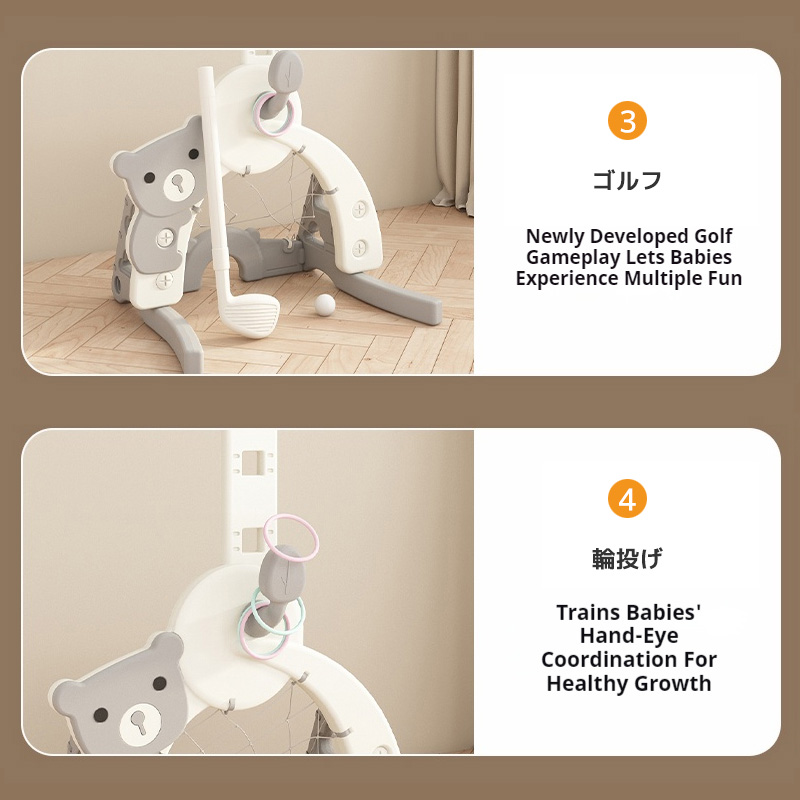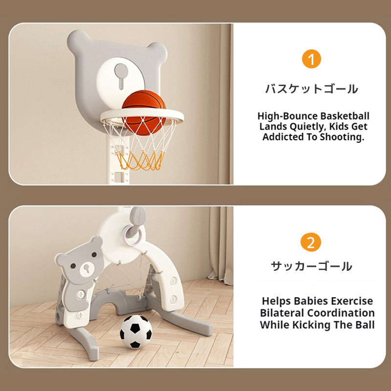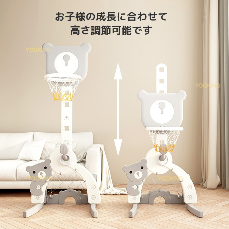 キッズ バスケットゴール 4in1 スポーツセット 室内遊具 バスケットボール サッカー ゴルフ 輪投げ 高さ調節 子供用 知育玩具 クマさん