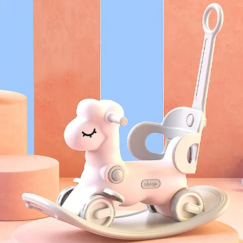 背にまたがって、前へうしろへ、ゆらゆら遊べるロッキングホース。