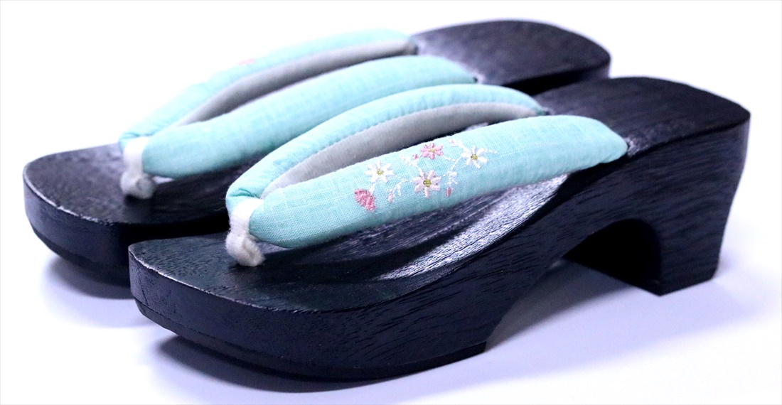 桐下駄 gt-47 青緑地・秋桜柄・フリーサイズ