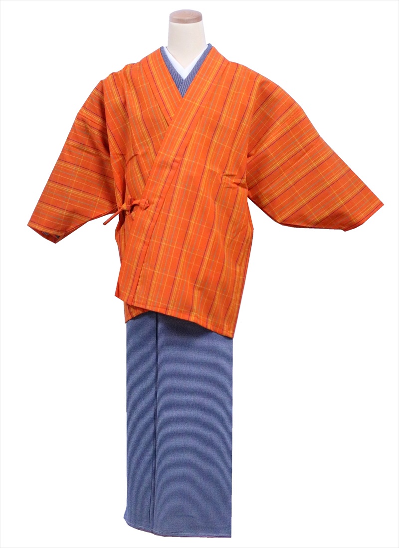 和装コート hc-16 オレンジ地・格子柄・ウール