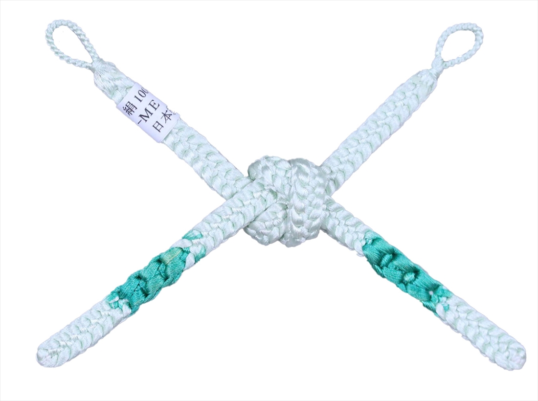 羽織り紐(ひも)・絹100%・全長16cm・紐の太さ約7mm・地色はうすいグリーン地です・日本製。