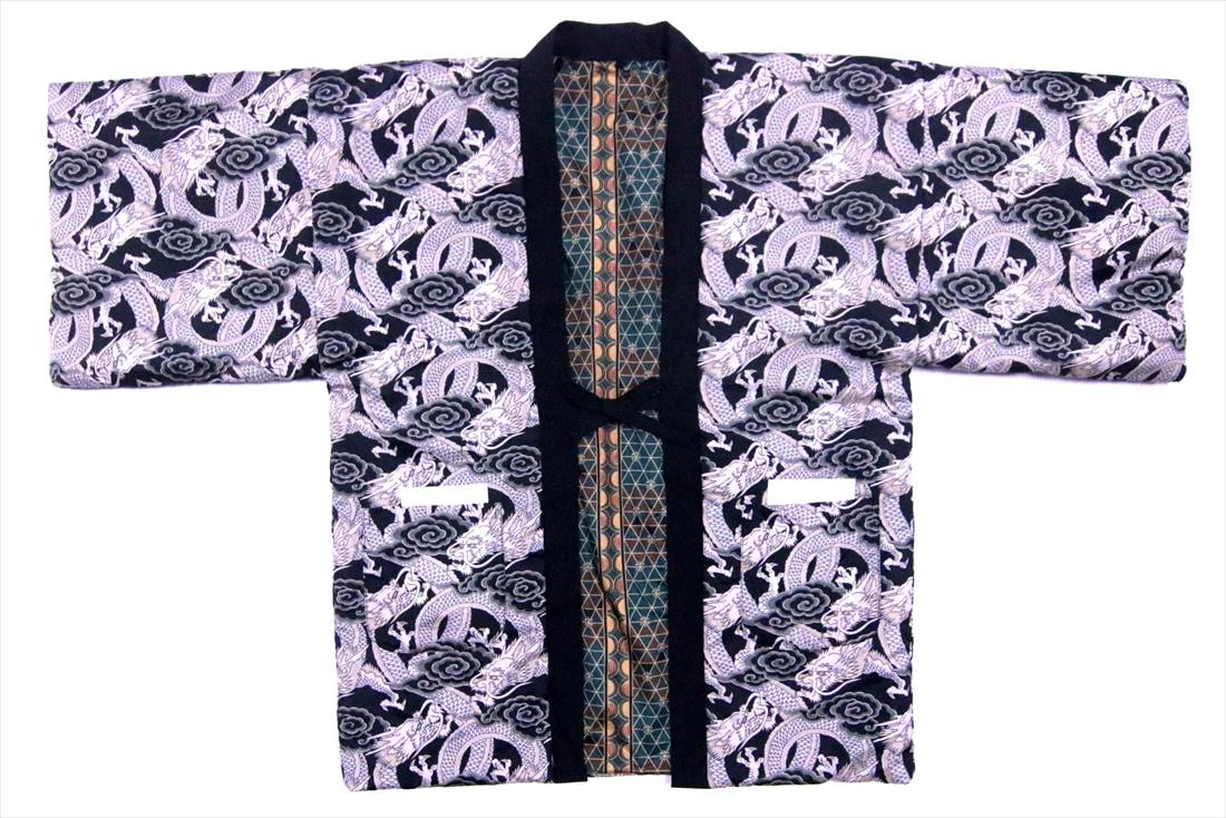 メンズ 両面半天 Fサイズ ht-16 竜柄・黒地