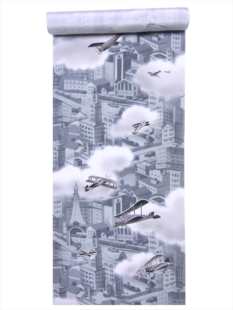 メンズ 長襦袢 反物 nj-14 グレー地・飛行機柄