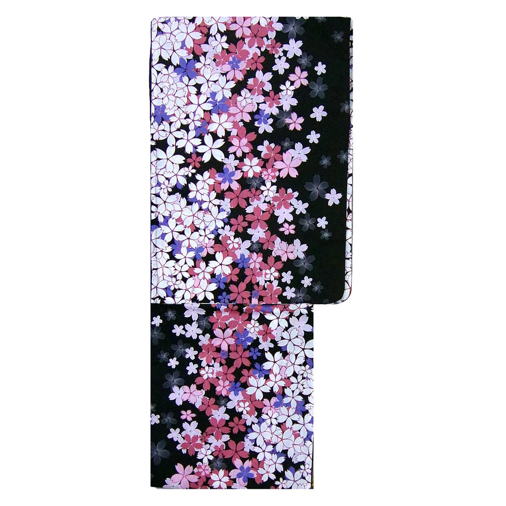浴衣 単品 レディース sy-186 サクラ柄・黒地・フリーサイズ