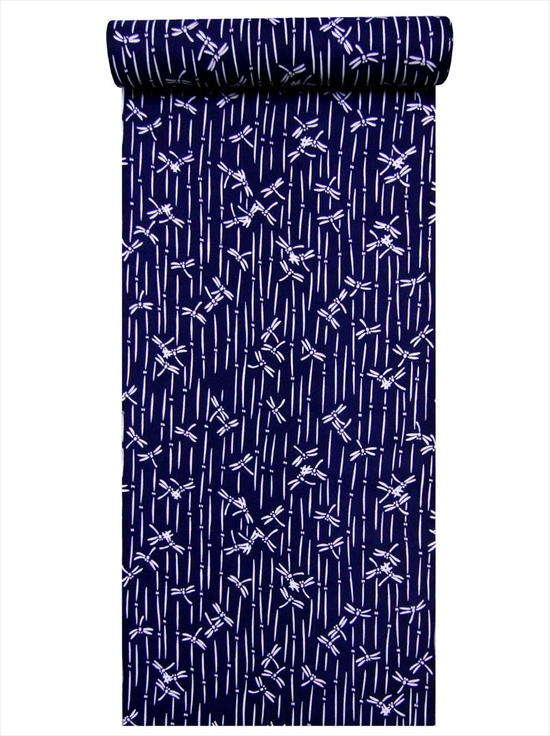 浴衣・反物・未仕立て品・綿100%・長さ12m・巾38cm・捺染(片面染め・片面染めですが裏も表同様キレイに染めっております)・平織り・耳有り・浜松産。浴衣・洋装・のれん・インテリア・和雑貨・各種カバー類など手芸の材料にご利用下さい。地色は濃紺地です。お手元に届きまして、イメージと違うようでしたら、裁断される前に至急ご返送ください。