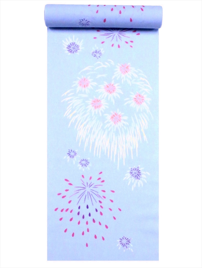 浴衣 反物 NO.145 水色地・花火柄・注染染め/耳あり