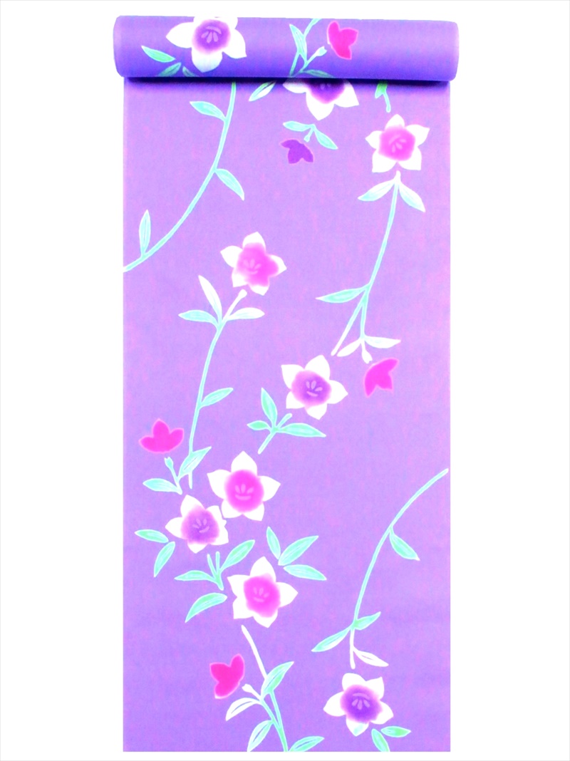 浴衣 反物 NO.149 うす紫地・キキョウ柄・注染染め/耳あり