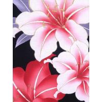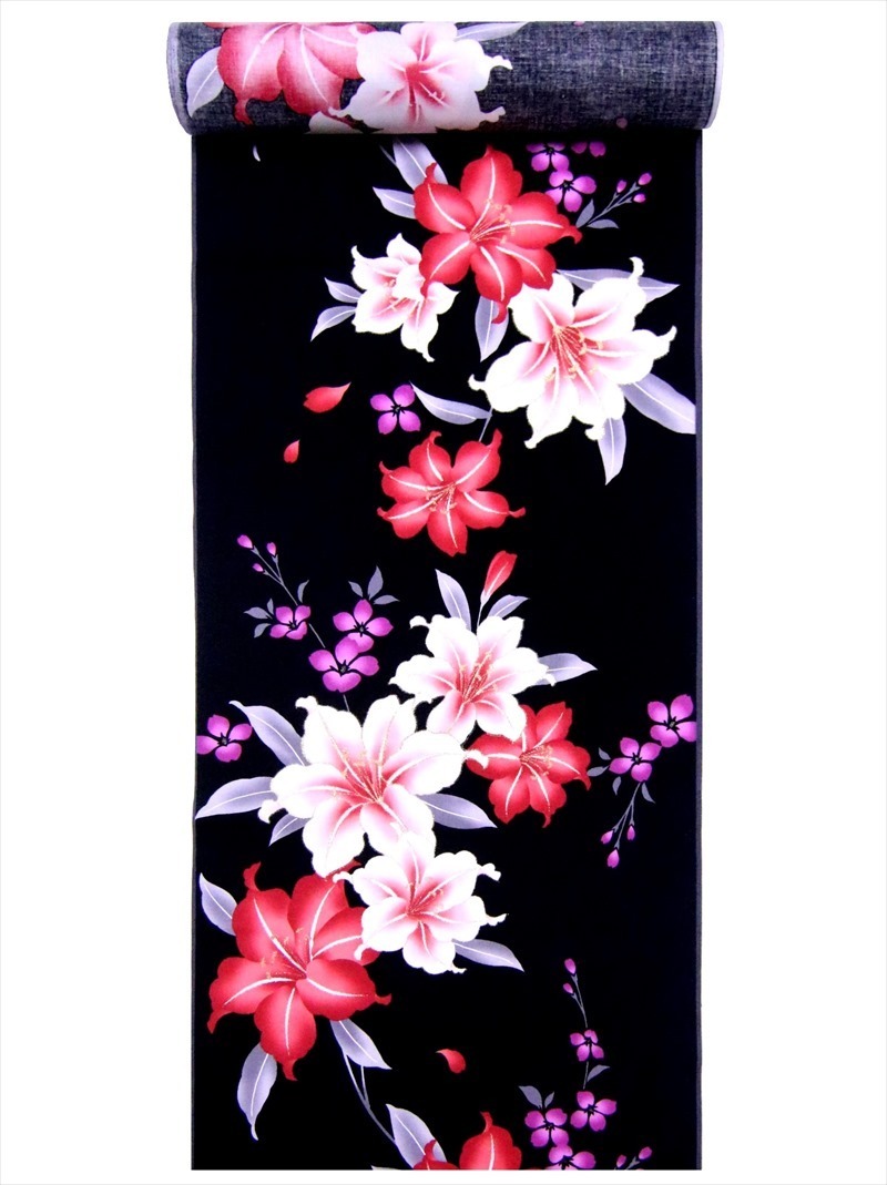 浴衣反物 教材用 No.15 黒地 百合柄 片面染め/耳ナシ