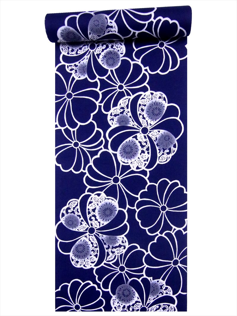 浴衣 反物 耳有り No.171 濃紺地・キク柄