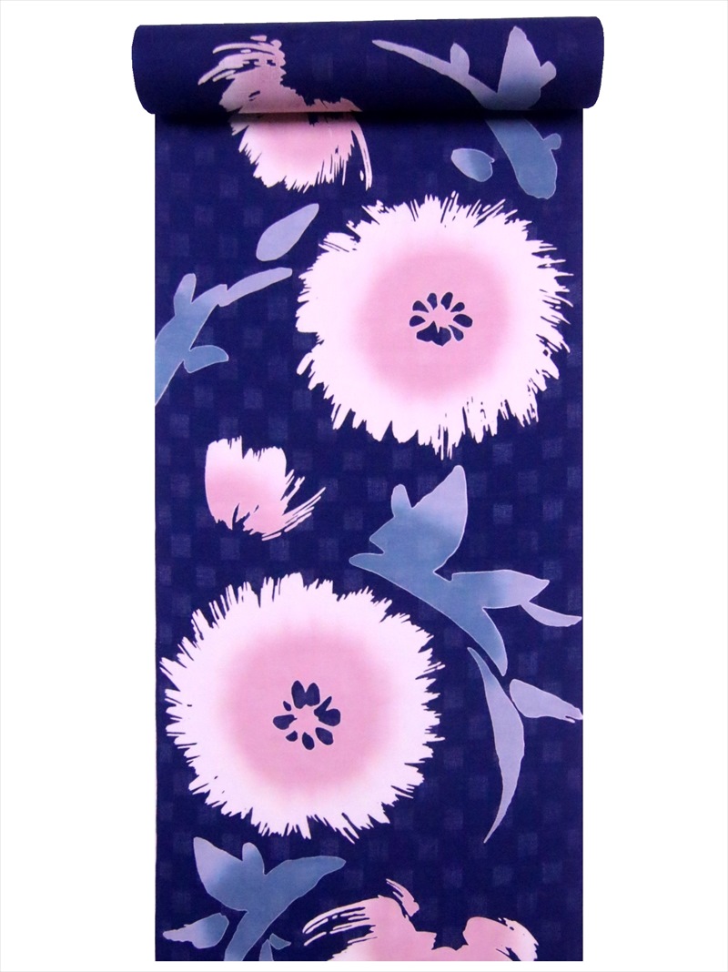 浴衣 反物 No.172 濃紺地・アザミ柄・ViVi ブランド