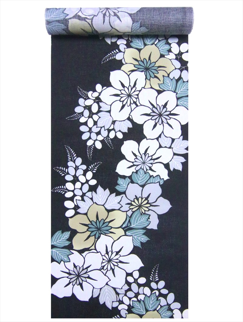 浴衣反物 No.178・鉄線柄・こげ茶地